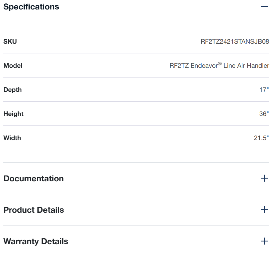 RHEEM - RF2TZ Endeavor™ Line Air Handler - RF2TZ2421STANSJB08 - 8 kW Factory Heat