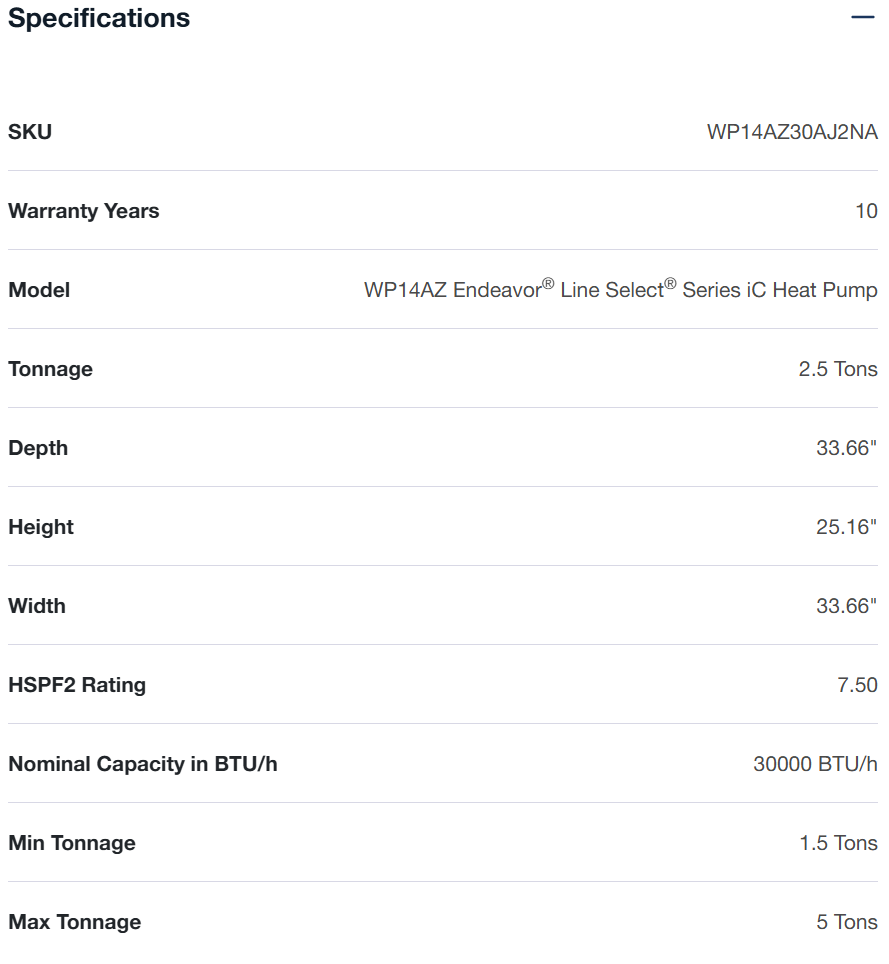 WP14AZ Endeavor™ Line Select® Series Heat Pump